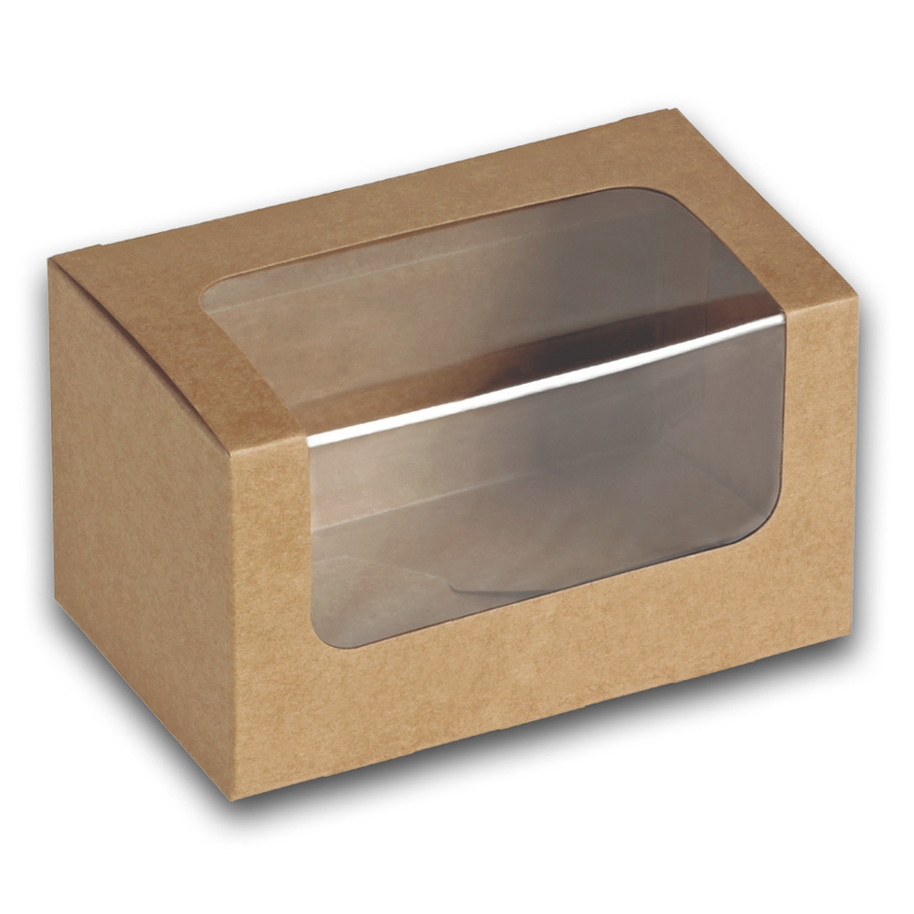 Naturesse papír elviteles doboz PLA bevonattal és PLA ablakkal, barna (12,5 x 7,7 x 7,2 cm) 25db/csomag 500db/karton